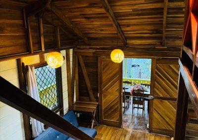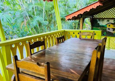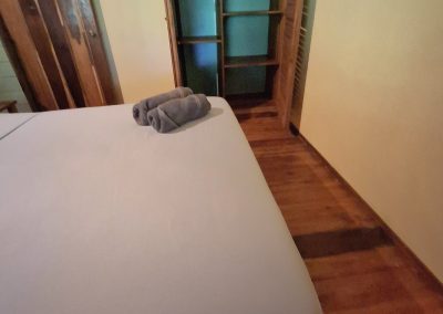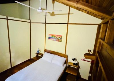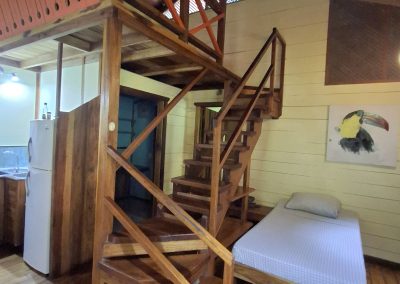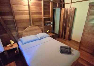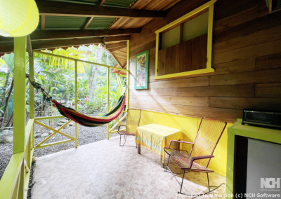 It is the smallest and cheapest house. It consists of a single-room apartment suitable for one or two people. The room has a comfortable double bed, a wardrobe with a trunk and a small bookcase as well as a bathroom with a large shower. Outside there is a small equipped kitchen in a covered terrace, a living room with armchairs and a hammock and a private outdoor area with a beautiful stone table dipped in the jungle.