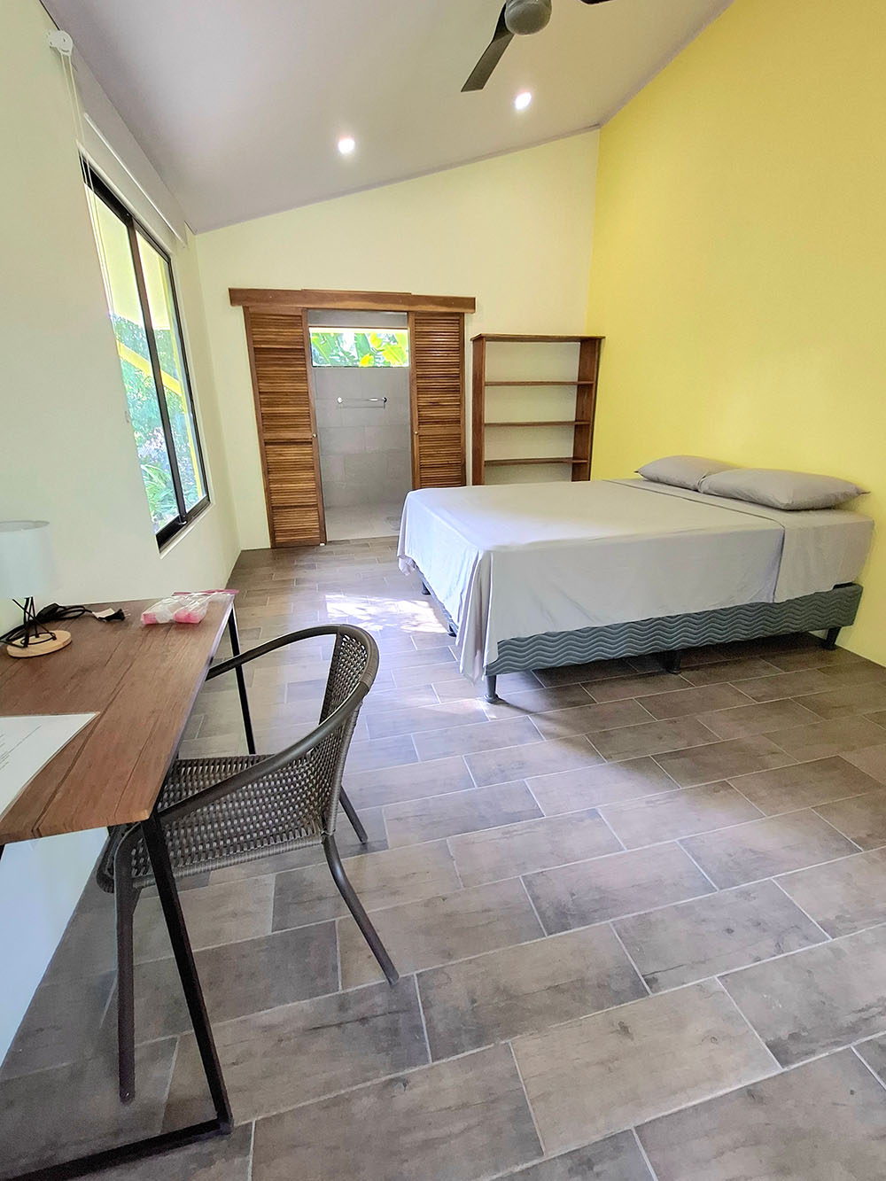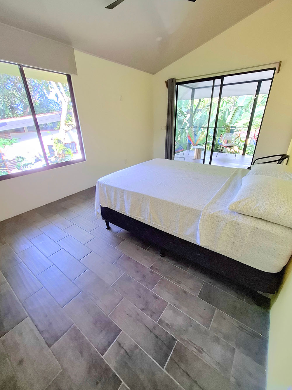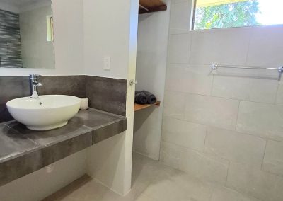 This is a nice apartment that can accommodate up to four people. It has two large double bedrooms and a bathroom with a shower endowed with hot water. The large covered terrace is used as a living/dining area with a comfortable fully equipped kitchen. Ideal for people who want a secluded space overlooking the beautiful tropical garden.
